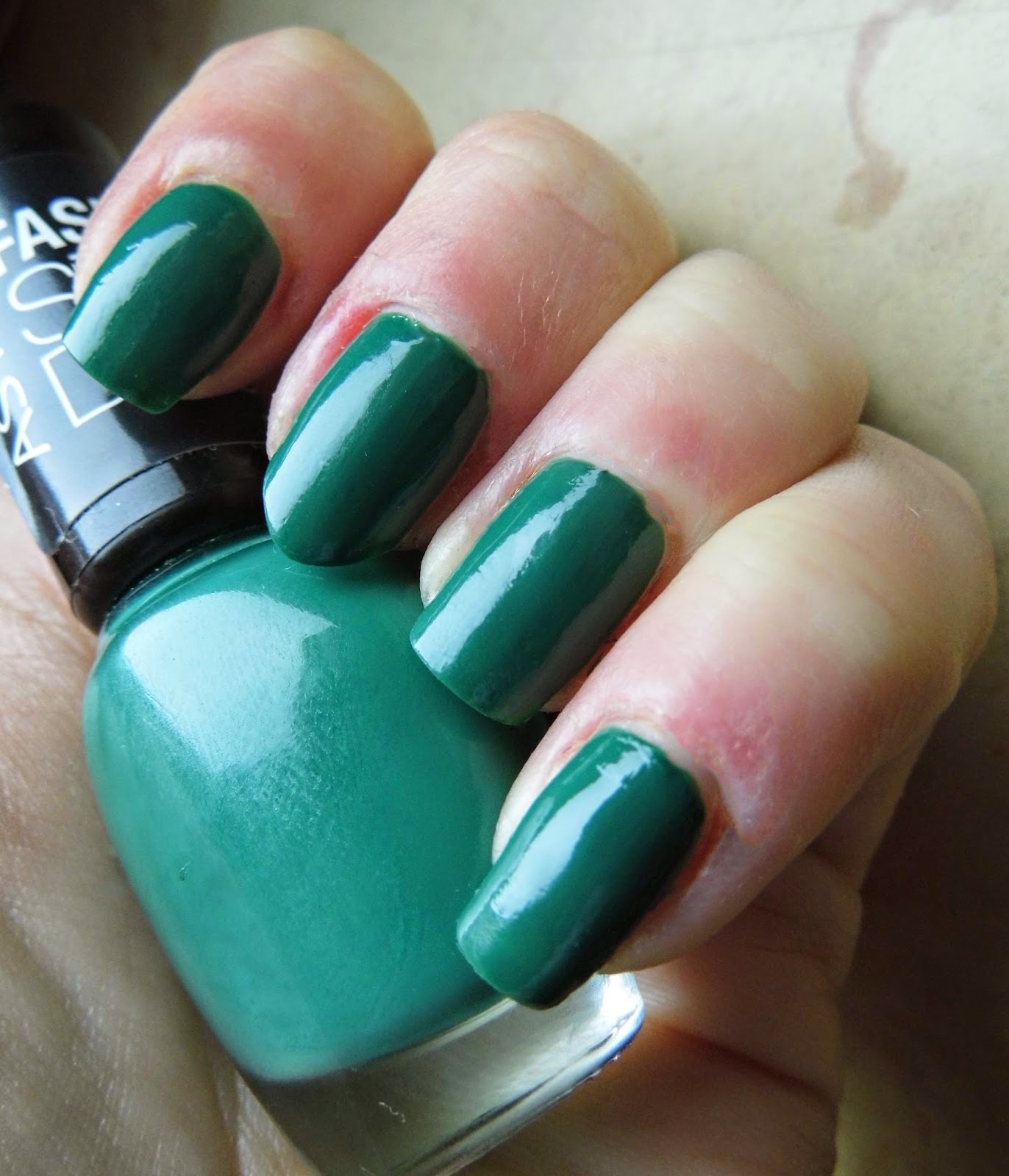This one is a darkish shade of grass green creme. I kind of like it, I’d say it’s beer-bottle-green. It also needed two coats.
