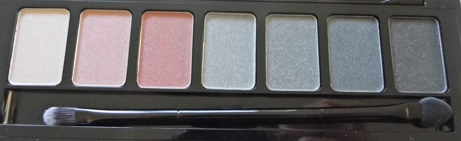 There are 7 eyeshadows in the palette, in pink and grey colours from bright to dark.