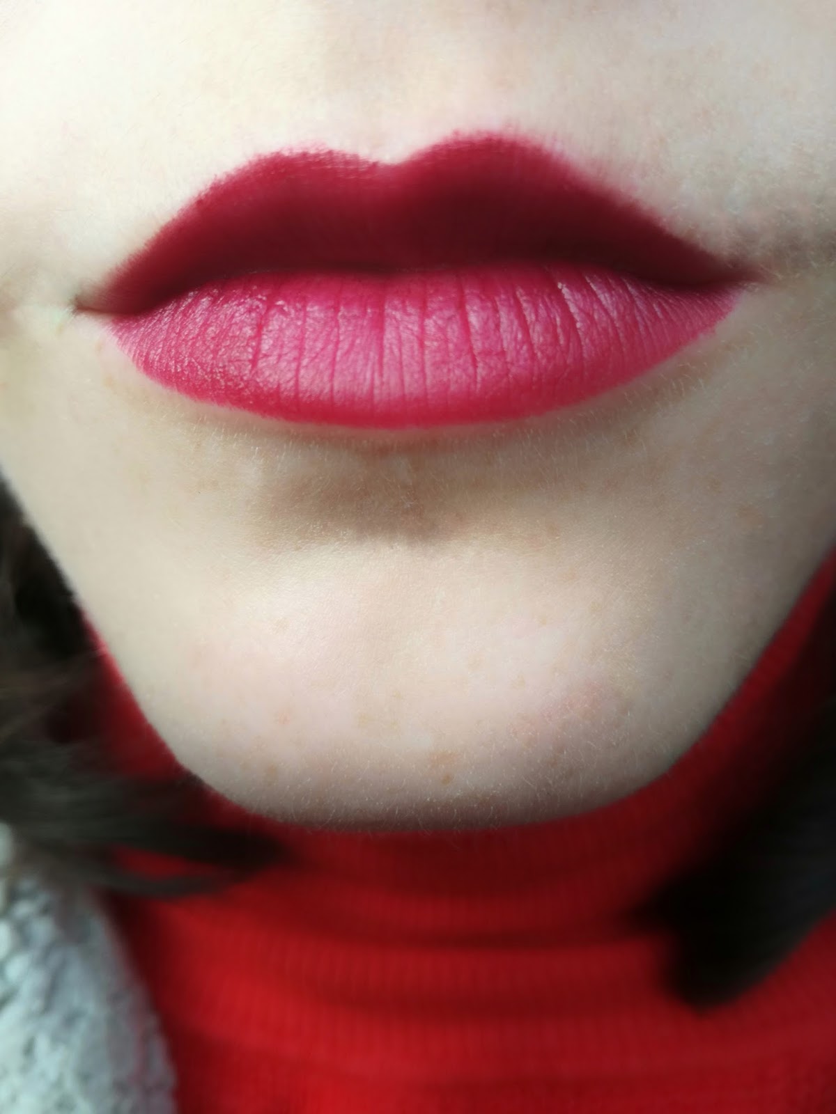 Darker burgundy red with a bit of purple tone. I was certain that it’ll be too dark for me looking at the package but luckily it is not that dark.