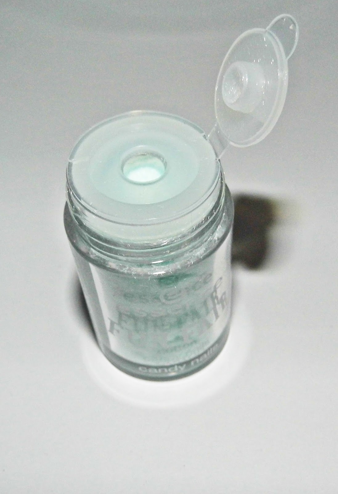 I used Essence Fall For Me from the old MultiDimension line as a base. I put on the first coat, waited for it to dry, and then I did one nail at a time – first the nail polish and right after the Cotton Candy Nails decoration. The application was really easy thanks to the packaging and there wasn’t a lot of a mess – you can see it on the pictures. I suggest you do this mani over a piece of paper – there is a small amount of dust going around and you can easily put it back in the packaging with a paper.